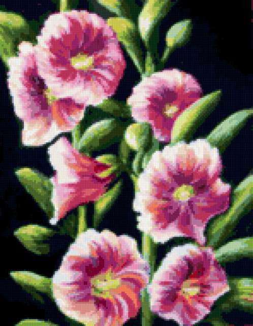 Ориентировочно так, схема вышивки «Stunning Flowers», созданная автором pandreevska, будет выглядеть при отшиве на канве. Размер данной вышивки равен 148x190 крестов, при этом используется 56 цветов. Ключевые слова, по которым можно найти эту схему: flower, stunning, colorful, decoration. Также, вы можете взглянуть на оригинальную картинку, соответствующую данной схеме вышивки.