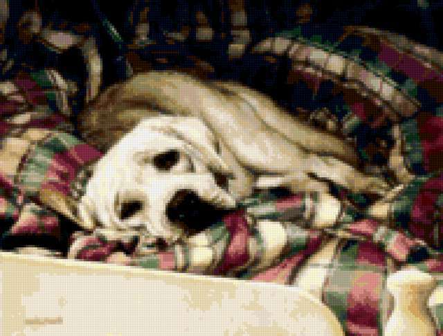 Ориентировочно так, схема вышивки «Sueellen Ross и ее животные », созданная автором malkinaiv, будет выглядеть при отшиве на канве. Размер данной вышивки равен 190x144 крестов, при этом используется 68 цветов. Ключевые слова, по которым можно найти эту схему: искусство, живопись, картина, собака, животные. Также, вы можете взглянуть на оригинальную картинку, соответствующую данной схеме вышивки.