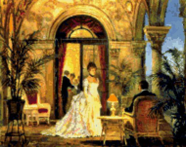 Ориентировочно так, схема вышивки «Summer Romance», созданная автором iborissova, будет выглядеть при отшиве на канве. Размер данной вышивки равен 190x151 крестов, при этом используется 79 цветов. Ключевые слова, по которым можно найти эту схему: victorian time. Также, вы можете взглянуть на оригинальную картинку, соответствующую данной схеме вышивки.