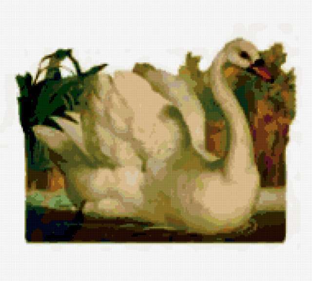 Ориентировочно так, схема вышивки «Swan», созданная автором lukrecija12, будет выглядеть при отшиве на канве. Размер данной вышивки равен 190x171 крестов, при этом используется 44 цветов. Ключевые слова, по которым можно найти эту схему: pticy. Также, вы можете взглянуть на оригинальную картинку, соответствующую данной схеме вышивки.