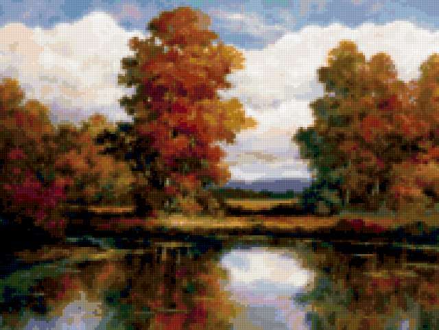 Ориентировочно так, схема вышивки «Tan Chun», созданная автором AllaBira, будет выглядеть при отшиве на канве. Размер данной вышивки равен 190x143 крестов, при этом используется 74 цветов. Ключевые слова, по которым можно найти эту схему: village. Также, вы можете взглянуть на оригинальную картинку, соответствующую данной схеме вышивки.