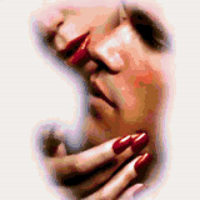 Ориентировочно так, схема вышивки «Tenderness», созданная автором rainbows, будет выглядеть при отшиве на канве. Размер данной вышивки равен 160x160 крестов, при этом используется 62 цветов. Ключевые слова, по которым можно найти эту схему: любовь, нежность. Также, вы можете взглянуть на оригинальную картинку, соответствующую данной схеме вышивки.