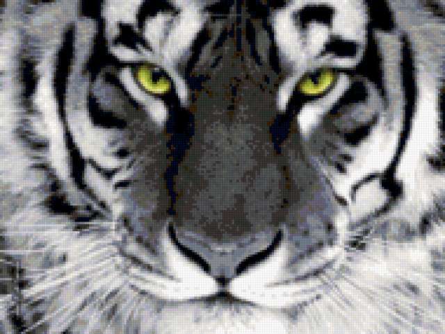 Ориентировочно так, схема вышивки «Tigr», созданная автором Lilu67, будет выглядеть при отшиве на канве. Размер данной вышивки равен 190x143 крестов, при этом используется 52 цветов. К несчастью, автор не назначил для схемы ключевые слова. Также, вы можете взглянуть на оригинальную картинку, соответствующую данной схеме вышивки.