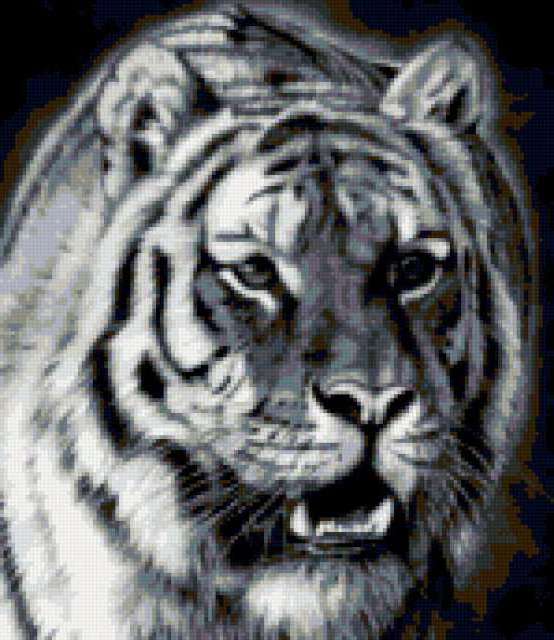 Ориентировочно так, схема вышивки «Tigr», созданная автором lukrecija12, будет выглядеть при отшиве на канве. Размер данной вышивки равен 149x172 крестов, при этом используется 16 цветов. Ключевые слова, по которым можно найти эту схему: zivotnye. Также, вы можете взглянуть на оригинальную картинку, соответствующую данной схеме вышивки.