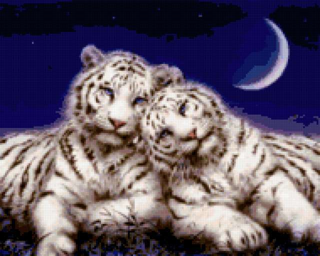 Ориентировочно так, схема вышивки «Tigryata», созданная автором sevarochka, будет выглядеть при отшиве на канве. Размер данной вышивки равен 190x152 крестов, при этом используется 57 цветов. Ключевые слова, по которым можно найти эту схему: tyger. Также, вы можете взглянуть на оригинальную картинку, соответствующую данной схеме вышивки.