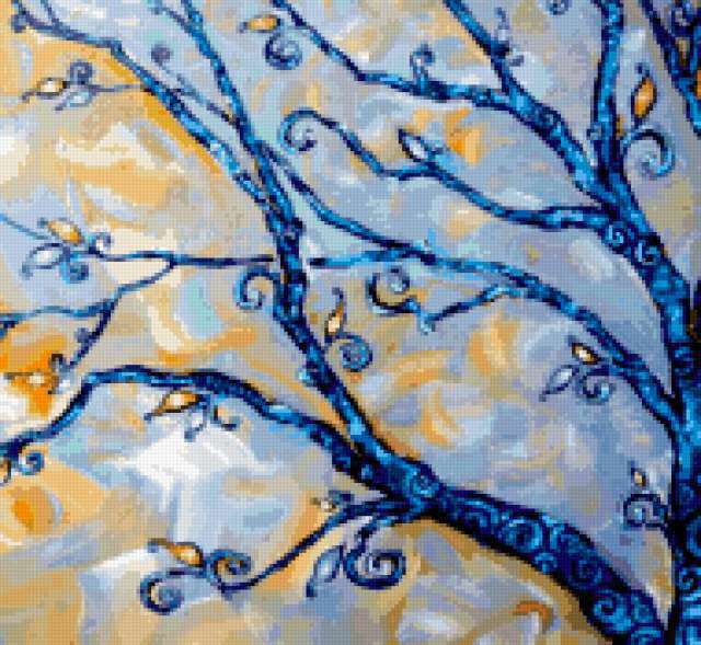 Ориентировочно так, схема вышивки «Tree», созданная автором aniela, будет выглядеть при отшиве на канве. Размер данной вышивки равен 190x175 крестов, при этом используется 73 цветов. Ключевые слова, по которым можно найти эту схему: decoration. Также, вы можете взглянуть на оригинальную картинку, соответствующую данной схеме вышивки.