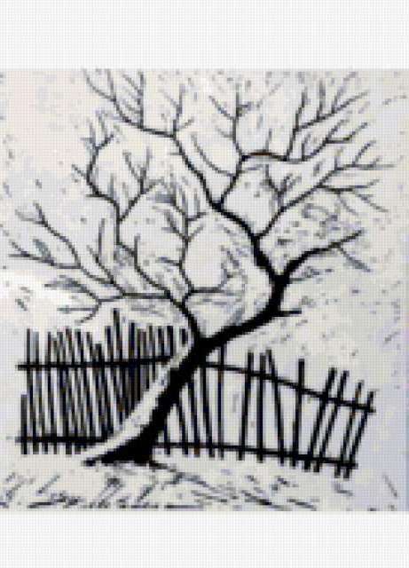 Ориентировочно так, схема вышивки «Tree», созданная автором aniela, будет выглядеть при отшиве на канве. Размер данной вышивки равен 137x190 крестов, при этом используется 27 цветов. Ключевые слова, по которым можно найти эту схему: winter, пейзаж, landscape, зима. Также, вы можете взглянуть на оригинальную картинку, соответствующую данной схеме вышивки.