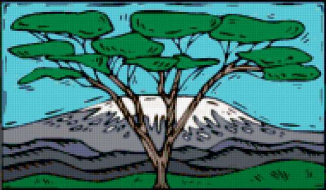 Ориентировочно так, схема вышивки «Tree», созданная автором aniela, будет выглядеть при отшиве на канве. Размер данной вышивки равен 190x111 крестов, при этом используется 53 цветов. Ключевые слова, по которым можно найти эту схему: пейзаж, landscape, tree. Также, вы можете взглянуть на оригинальную картинку, соответствующую данной схеме вышивки.
