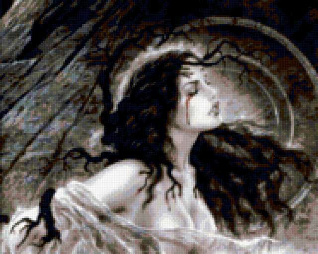 Ориентировочно так, схема вышивки «Unnamed-1004964», созданная автором vitadrita, будет выглядеть при отшиве на канве. Размер данной вышивки равен 186x149 крестов, при этом используется 48 цветов. К несчастью, автор не назначил для схемы ключевые слова. Также, вы можете взглянуть на оригинальную картинку, соответствующую данной схеме вышивки.