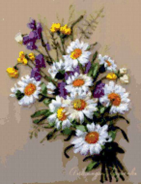Ориентировочно так, схема вышивки «Unnamed-1004973», созданная автором Luda49, будет выглядеть при отшиве на канве. Размер данной вышивки равен 146x190 крестов, при этом используется 44 цветов. К несчастью, автор не назначил для схемы ключевые слова. Также, вы можете взглянуть на оригинальную картинку, соответствующую данной схеме вышивки.