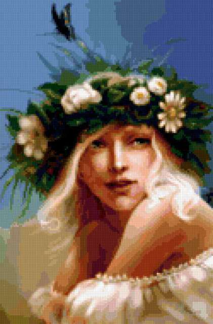 Ориентировочно так, схема вышивки «Unnamed-1004977», созданная автором vitadrita, будет выглядеть при отшиве на канве. Размер данной вышивки равен 125x190 крестов, при этом используется 76 цветов. К несчастью, автор не назначил для схемы ключевые слова. Также, вы можете взглянуть на оригинальную картинку, соответствующую данной схеме вышивки.