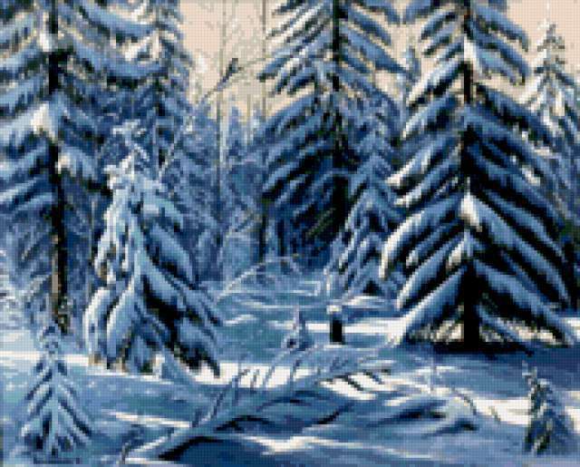 Ориентировочно так, схема вышивки «Unnamed-1005092», созданная автором malkinaiv, будет выглядеть при отшиве на канве. Размер данной вышивки равен 190x153 крестов, при этом используется 45 цветов. Ключевые слова, по которым можно найти эту схему: искусство, живопись, картина, пейзаж, зима, снег, сугробы, елки, деревья. Также, вы можете взглянуть на оригинальную картинку, соответствующую данной схеме вышивки.
