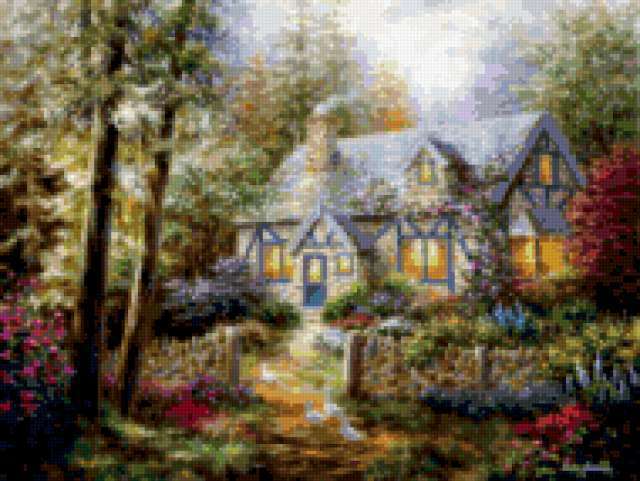 Ориентировочно так, схема вышивки «Unnamed-1009947», созданная автором kiseonka, будет выглядеть при отшиве на канве. Размер данной вышивки равен 190x143 крестов, при этом используется 84 цветов. К несчастью, автор не назначил для схемы ключевые слова. Также, вы можете взглянуть на оригинальную картинку, соответствующую данной схеме вышивки.
