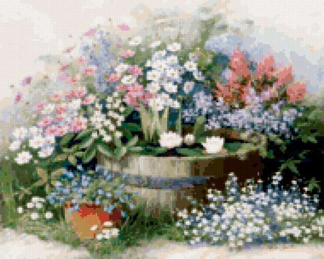 Ориентировочно так, схема вышивки «Unnamed-1014749», созданная автором alyasha, будет выглядеть при отшиве на канве. Размер данной вышивки равен 190x152 крестов, при этом используется 68 цветов. Ключевые слова, по которым можно найти эту схему: цветы. Также, вы можете взглянуть на оригинальную картинку, соответствующую данной схеме вышивки.