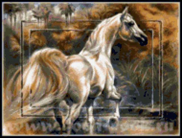 Ориентировочно так, схема вышивки «Unnamed-1017100», созданная автором alyasha, будет выглядеть при отшиве на канве. Размер данной вышивки равен 190x144 крестов, при этом используется 60 цветов. Ключевые слова, по которым можно найти эту схему: кони. Также, вы можете взглянуть на оригинальную картинку, соответствующую данной схеме вышивки.