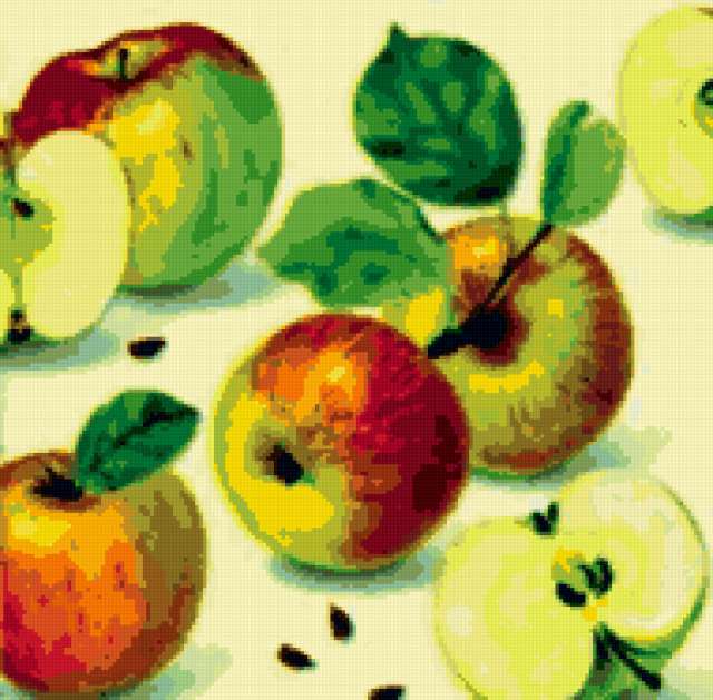 Ориентировочно так, схема вышивки «Unnamed-1018212», созданная автором anor, будет выглядеть при отшиве на канве. Размер данной вышивки равен 190x187 крестов, при этом используется 50 цветов. Ключевые слова, по которым можно найти эту схему: натюрморт, фрукты, для кухни, яблоки, картина, ягоды. Также, вы можете взглянуть на оригинальную картинку, соответствующую данной схеме вышивки.