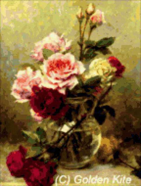 Ориентировочно так, схема вышивки «Unnamed-1019400», созданная автором ozcihan, будет выглядеть при отшиве на канве. Размер данной вышивки равен 144x190 крестов, при этом используется 71 цветов. К несчастью, автор не назначил для схемы ключевые слова. Также, вы можете взглянуть на оригинальную картинку, соответствующую данной схеме вышивки.