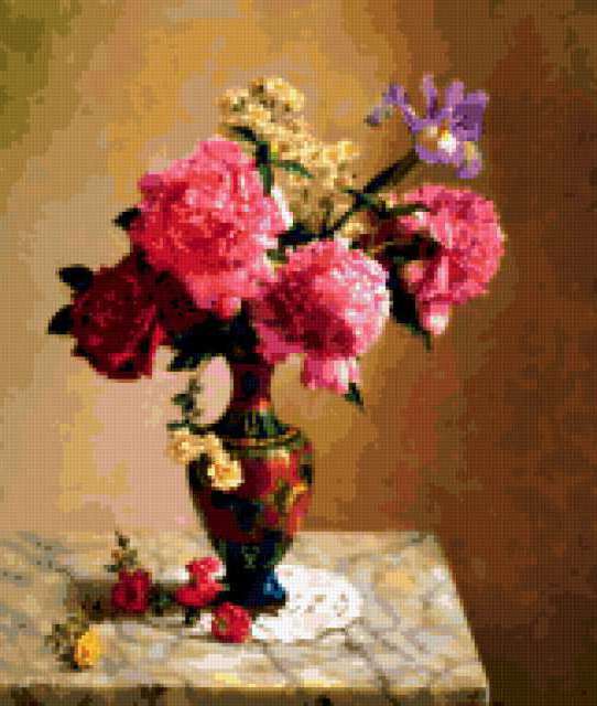 Ориентировочно так, схема вышивки «Unnamed-1023287», созданная автором malinka_10, будет выглядеть при отшиве на канве. Размер данной вышивки равен 161x190 крестов, при этом используется 78 цветов. К несчастью, автор не назначил для схемы ключевые слова. Также, вы можете взглянуть на оригинальную картинку, соответствующую данной схеме вышивки.