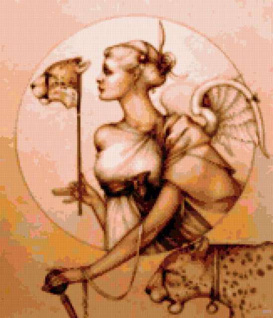 Ориентировочно так, схема вышивки «Unnamed-1026698», созданная автором ze79, будет выглядеть при отшиве на канве. Размер данной вышивки равен 163x190 крестов, при этом используется 30 цветов. Ключевые слова, по которым можно найти эту схему: девушка, женщина, люди, животные, дикие кошки, фэнтези. Также, вы можете взглянуть на оригинальную картинку, соответствующую данной схеме вышивки.