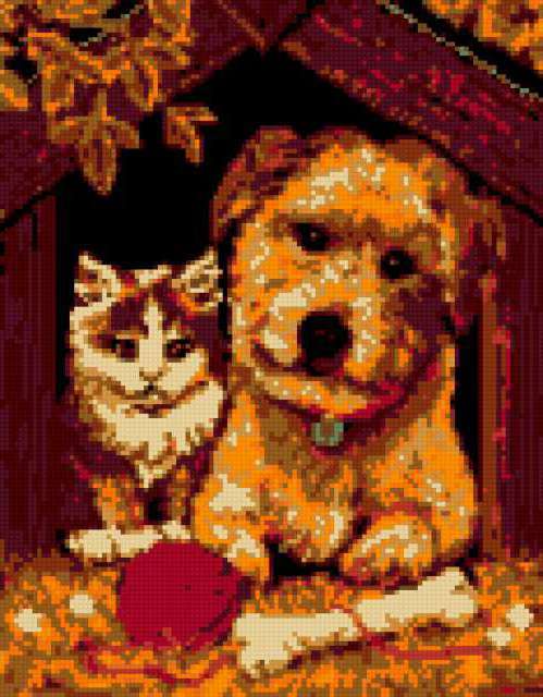 Ориентировочно так, схема вышивки «Unnamed-1027741», созданная автором Minin, будет выглядеть при отшиве на канве. Размер данной вышивки равен 117x150 крестов, при этом используется 15 цветов. Ключевые слова, по которым можно найти эту схему: живопись, искусство, картина, природа, животные, кошки, собаки. Также, вы можете взглянуть на оригинальную картинку, соответствующую данной схеме вышивки.