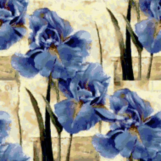 Ориентировочно так, схема вышивки «Unnamed-1028692», созданная автором burova, будет выглядеть при отшиве на канве. Размер данной вышивки равен 190x190 крестов, при этом используется 46 цветов. Ключевые слова, по которым можно найти эту схему: подушка, подушки, цветы, ирисы. Также, вы можете взглянуть на оригинальную картинку, соответствующую данной схеме вышивки.