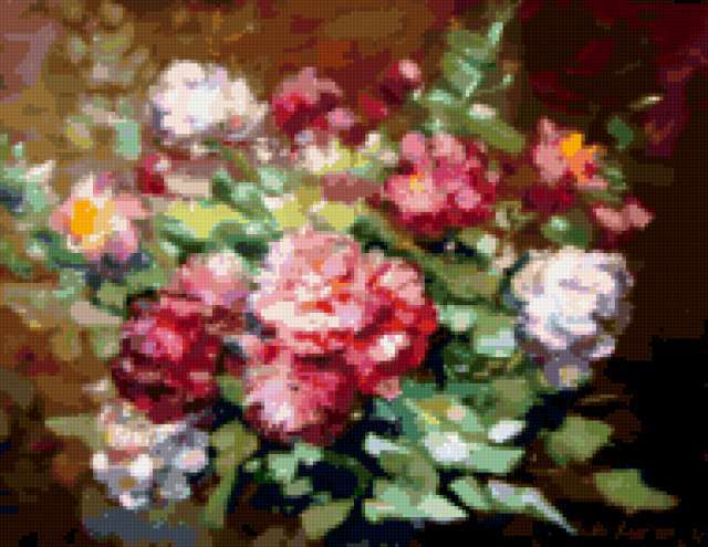 Ориентировочно так, схема вышивки «Unnamed-1046195», созданная автором malkinaiv, будет выглядеть при отшиве на канве. Размер данной вышивки равен 190x147 крестов, при этом используется 86 цветов. Ключевые слова, по которым можно найти эту схему: искусство, живопись, картина, цветы, букет. Также, вы можете взглянуть на оригинальную картинку, соответствующую данной схеме вышивки.