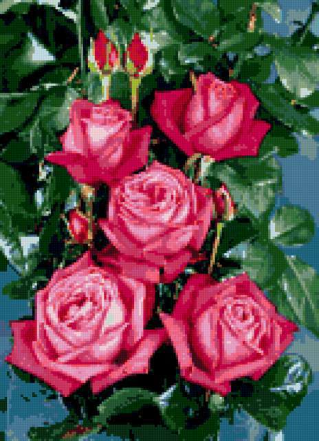 Ориентировочно так, схема вышивки «Unnamed-1046401», созданная автором Luda49, будет выглядеть при отшиве на канве. Размер данной вышивки равен 138x190 крестов, при этом используется 37 цветов. К несчастью, автор не назначил для схемы ключевые слова. Также, вы можете взглянуть на оригинальную картинку, соответствующую данной схеме вышивки.