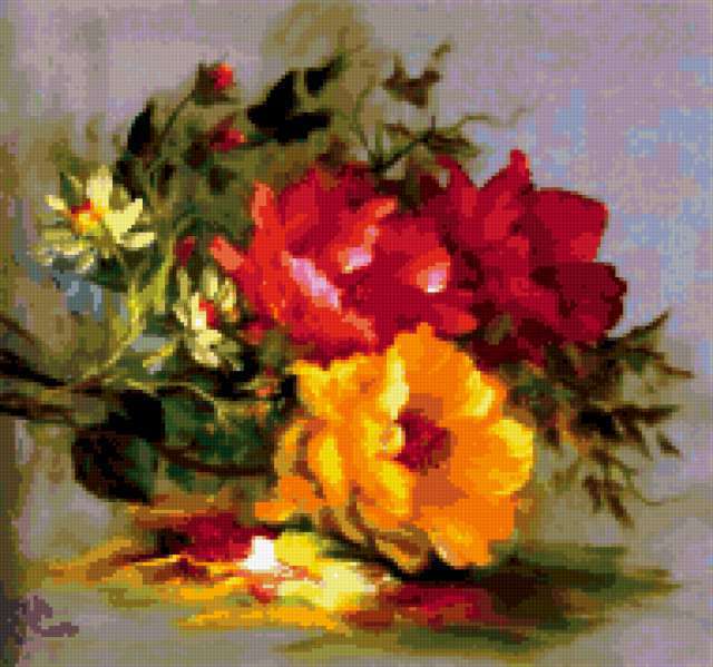 Ориентировочно так, схема вышивки «Unnamed-1049764», созданная автором ibyibkkf, будет выглядеть при отшиве на канве. Размер данной вышивки равен 190x178 крестов, при этом используется 73 цветов. Ключевые слова, по которым можно найти эту схему: цветы. Также, вы можете взглянуть на оригинальную картинку, соответствующую данной схеме вышивки.