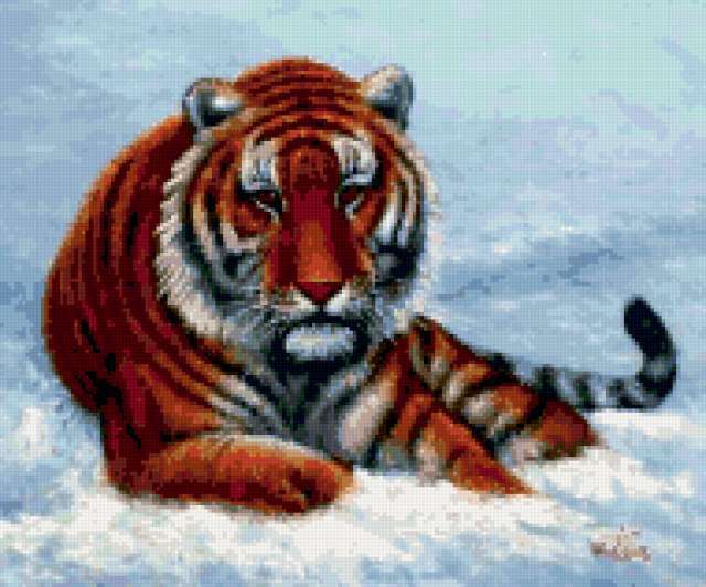 Ориентировочно так, схема вышивки «Unnamed-1049984», созданная автором ninus1ninus, будет выглядеть при отшиве на канве. Размер данной вышивки равен 190x158 крестов, при этом используется 63 цветов. К несчастью, автор не назначил для схемы ключевые слова. Также, вы можете взглянуть на оригинальную картинку, соответствующую данной схеме вышивки.