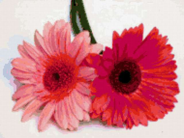 Ориентировочно так, схема вышивки «Unnamed-1056953», созданная автором burova, будет выглядеть при отшиве на канве. Размер данной вышивки равен 190x143 крестов, при этом используется 49 цветов. Ключевые слова, по которым можно найти эту схему: цветы, герберы. Также, вы можете взглянуть на оригинальную картинку, соответствующую данной схеме вышивки.