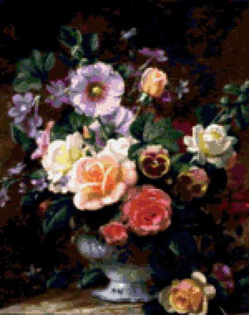 Ориентировочно так, схема вышивки «Unnamed-1062445», созданная автором QQQQ1, будет выглядеть при отшиве на канве. Размер данной вышивки равен 150x190 крестов, при этом используется 71 цветов. К несчастью, автор не назначил для схемы ключевые слова. Также, вы можете взглянуть на оригинальную картинку, соответствующую данной схеме вышивки.