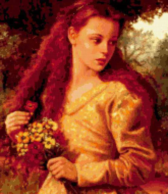 Ориентировочно так, схема вышивки «Unnamed-1062898», созданная автором Volkodav, будет выглядеть при отшиве на канве. Размер данной вышивки равен 165x190 крестов, при этом используется 51 цветов. Ключевые слова, по которым можно найти эту схему: девушка, романтика. Также, вы можете взглянуть на оригинальную картинку, соответствующую данной схеме вышивки.