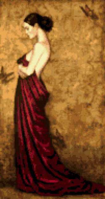 Ориентировочно так, схема вышивки «Unnamed-1063280», созданная автором ze79, будет выглядеть при отшиве на канве. Размер данной вышивки равен 101x190 крестов, при этом используется 41 цветов. Ключевые слова, по которым можно найти эту схему: девушка, женщина, люди, искусство, бабочки. Также, вы можете взглянуть на оригинальную картинку, соответствующую данной схеме вышивки.
