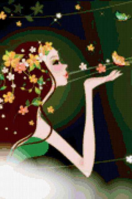 Ориентировочно так, схема вышивки «Unnamed-1070543», созданная автором Nadena_love, будет выглядеть при отшиве на канве. Размер данной вышивки равен 120x180 крестов, при этом используется 75 цветов. К несчастью, автор не назначил для схемы ключевые слова. Также, вы можете взглянуть на оригинальную картинку, соответствующую данной схеме вышивки.