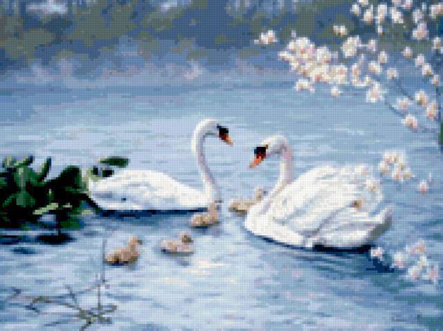 Ориентировочно так, схема вышивки «Unnamed-1079994», созданная автором chokolat, будет выглядеть при отшиве на канве. Размер данной вышивки равен 190x142 крестов, при этом используется 61 цветов. Ключевые слова, по которым можно найти эту схему: лебеди. Также, вы можете взглянуть на оригинальную картинку, соответствующую данной схеме вышивки.