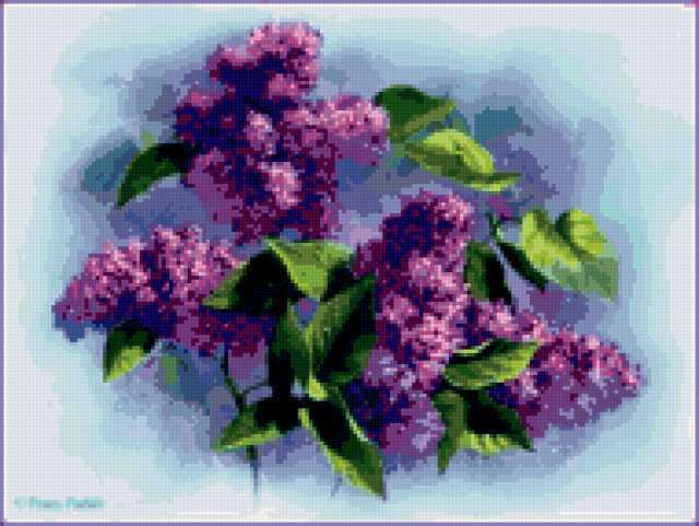 Ориентировочно так, схема вышивки «Unnamed-1087563», созданная автором burova, будет выглядеть при отшиве на канве. Размер данной вышивки равен 190x143 крестов, при этом используется 52 цветов. Ключевые слова, по которым можно найти эту схему: цветы, сирень. Также, вы можете взглянуть на оригинальную картинку, соответствующую данной схеме вышивки.