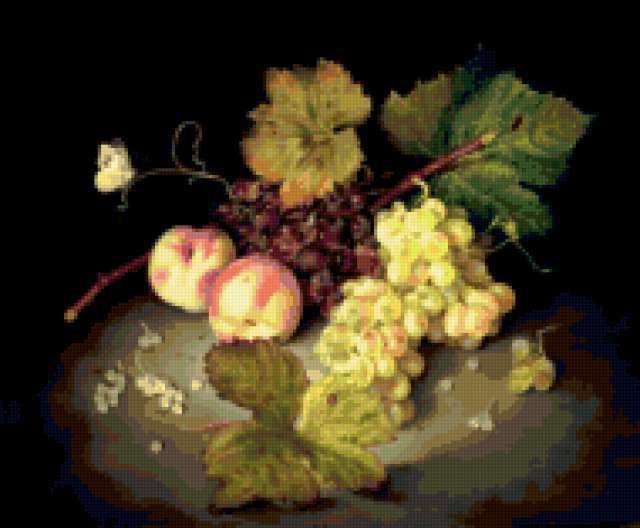 Ориентировочно так, схема вышивки «Unnamed-1090963», созданная автором chokolat, будет выглядеть при отшиве на канве. Размер данной вышивки равен 190x157 крестов, при этом используется 70 цветов. Ключевые слова, по которым можно найти эту схему: фрукты, картина, натюрморт, кухня. Также, вы можете взглянуть на оригинальную картинку, соответствующую данной схеме вышивки.