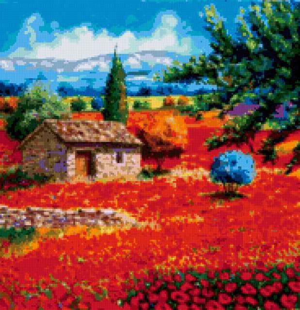 Ориентировочно так, схема вышивки «Unnamed-1098364», созданная автором givi, будет выглядеть при отшиве на канве. Размер данной вышивки равен 184x190 крестов, при этом используется 69 цветов. К несчастью, автор не назначил для схемы ключевые слова. Также, вы можете взглянуть на оригинальную картинку, соответствующую данной схеме вышивки.