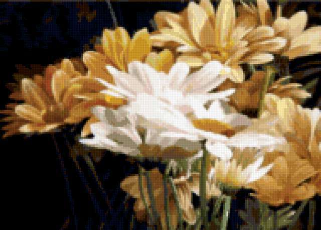 Ориентировочно так, схема вышивки «Unnamed-1100726», созданная автором ibyibkkf, будет выглядеть при отшиве на канве. Размер данной вышивки равен 190x136 крестов, при этом используется 66 цветов. Ключевые слова, по которым можно найти эту схему: цветы . Также, вы можете взглянуть на оригинальную картинку, соответствующую данной схеме вышивки.