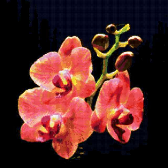 Ориентировочно так, схема вышивки «Unnamed-1105916», созданная автором malkinaiv, будет выглядеть при отшиве на канве. Размер данной вышивки равен 190x190 крестов, при этом используется 42 цветов. Ключевые слова, по которым можно найти эту схему: подушка, подушки, цветы, орхидеи, на черном. Также, вы можете взглянуть на оригинальную картинку, соответствующую данной схеме вышивки.