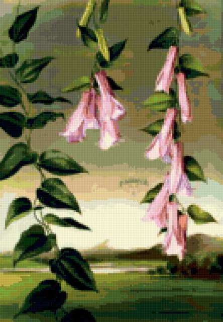 Ориентировочно так, схема вышивки «Unnamed-1108256», созданная автором ibyibkkf, будет выглядеть при отшиве на канве. Размер данной вышивки равен 132x190 крестов, при этом используется 64 цветов. Ключевые слова, по которым можно найти эту схему: цветы. Также, вы можете взглянуть на оригинальную картинку, соответствующую данной схеме вышивки.