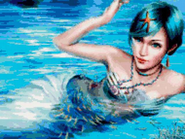 Ориентировочно так, схема вышивки «Unnamed-1110131», созданная автором chokolat, будет выглядеть при отшиве на канве. Размер данной вышивки равен 190x143 крестов, при этом используется 59 цветов. Ключевые слова, по которым можно найти эту схему: русалка. Также, вы можете взглянуть на оригинальную картинку, соответствующую данной схеме вышивки.