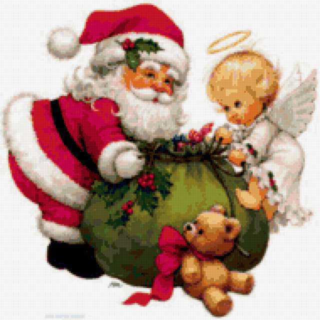 Ориентировочно так, схема вышивки «Unnamed-1134655», созданная автором allllla, будет выглядеть при отшиве на канве. Размер данной вышивки равен 190x190 крестов, при этом используется 68 цветов. Ключевые слова, по которым можно найти эту схему: дед мороз, картина, картинка, санта, санта клаус, новый год, рождество, ангелочек. Также, вы можете взглянуть на оригинальную картинку, соответствующую данной схеме вышивки.