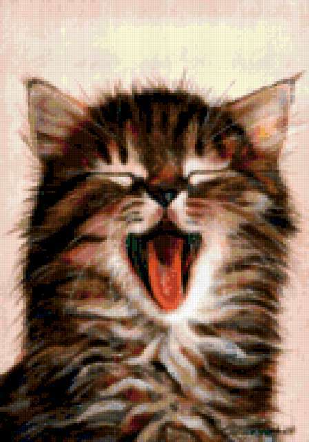 Ориентировочно так, схема вышивки «Unnamed-1143055», созданная автором chokolat, будет выглядеть при отшиве на канве. Размер данной вышивки равен 133x190 крестов, при этом используется 69 цветов. Ключевые слова, по которым можно найти эту схему: котенок. Также, вы можете взглянуть на оригинальную картинку, соответствующую данной схеме вышивки.