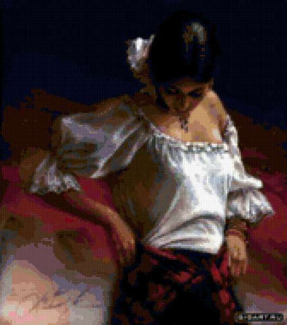 Ориентировочно так, схема вышивки «Unnamed-1148314», созданная автором vitadrita, будет выглядеть при отшиве на канве. Размер данной вышивки равен 168x190 крестов, при этом используется 59 цветов. К несчастью, автор не назначил для схемы ключевые слова. Также, вы можете взглянуть на оригинальную картинку, соответствующую данной схеме вышивки.