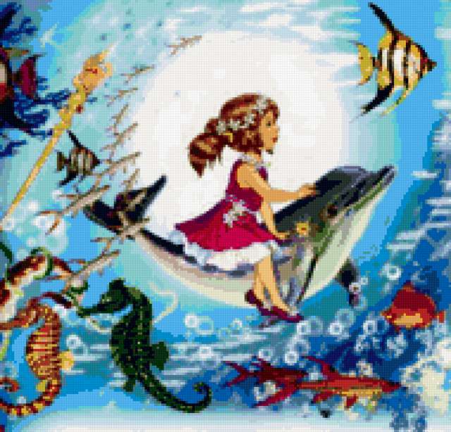 Ориентировочно так, схема вышивки «Unnamed-1155699», созданная автором malkinaiv, будет выглядеть при отшиве на канве. Размер данной вышивки равен 190x182 крестов, при этом используется 67 цветов. Ключевые слова, по которым можно найти эту схему: картинки, иллюстрации, сказки, дети, девочка, дельфин, море, рыбы, детям, в детскую, для детей. Также, вы можете взглянуть на оригинальную картинку, соответствующую данной схеме вышивки.