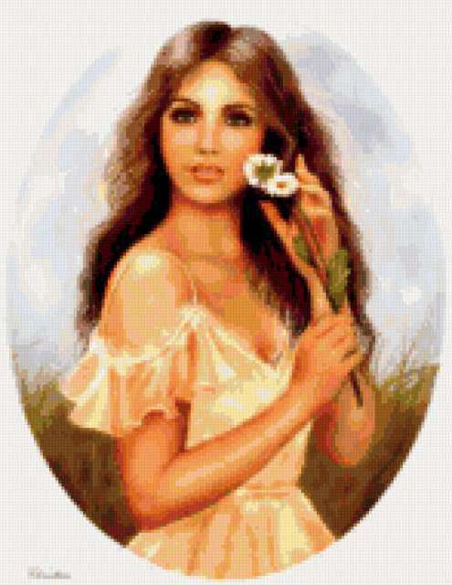 Ориентировочно так, схема вышивки «Unnamed-1160012», созданная автором allllla, будет выглядеть при отшиве на канве. Размер данной вышивки равен 147x190 крестов, при этом используется 65 цветов. Ключевые слова, по которым можно найти эту схему: девушка, девушки, портрет, женские образы, картина. Также, вы можете взглянуть на оригинальную картинку, соответствующую данной схеме вышивки.