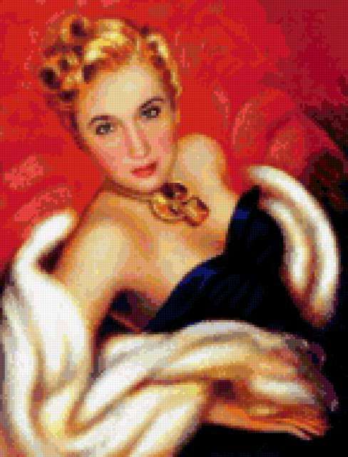 Ориентировочно так, схема вышивки «Unnamed-1166899», созданная автором BiataV, будет выглядеть при отшиве на канве. Размер данной вышивки равен 145x190 крестов, при этом используется 74 цветов. Ключевые слова, по которым можно найти эту схему: девушка, американская мечта, пин-ап арт. Также, вы можете взглянуть на оригинальную картинку, соответствующую данной схеме вышивки.