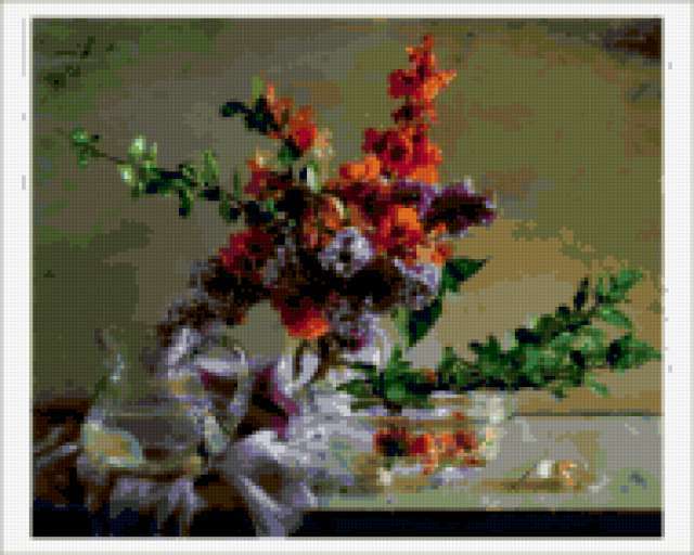 Ориентировочно так, схема вышивки «Unnamed-1169454», созданная автором MamaKsu13, будет выглядеть при отшиве на канве. Размер данной вышивки равен 190x152 крестов, при этом используется 74 цветов. К несчастью, автор не назначил для схемы ключевые слова. Также, вы можете взглянуть на оригинальную картинку, соответствующую данной схеме вышивки.