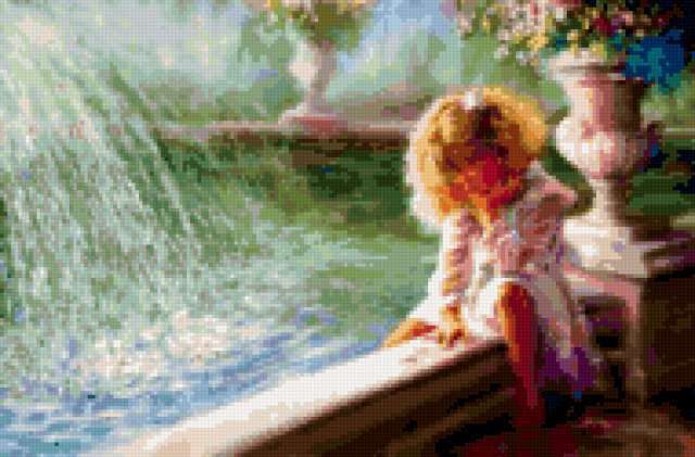 Ориентировочно так, схема вышивки «Unnamed-1171940», созданная автором burova, будет выглядеть при отшиве на канве. Размер данной вышивки равен 190x125 крестов, при этом используется 84 цветов. Ключевые слова, по которым можно найти эту схему: искусство, живопись, картина, пейзаж, дети, девочка цветы, фонтан. Также, вы можете взглянуть на оригинальную картинку, соответствующую данной схеме вышивки.